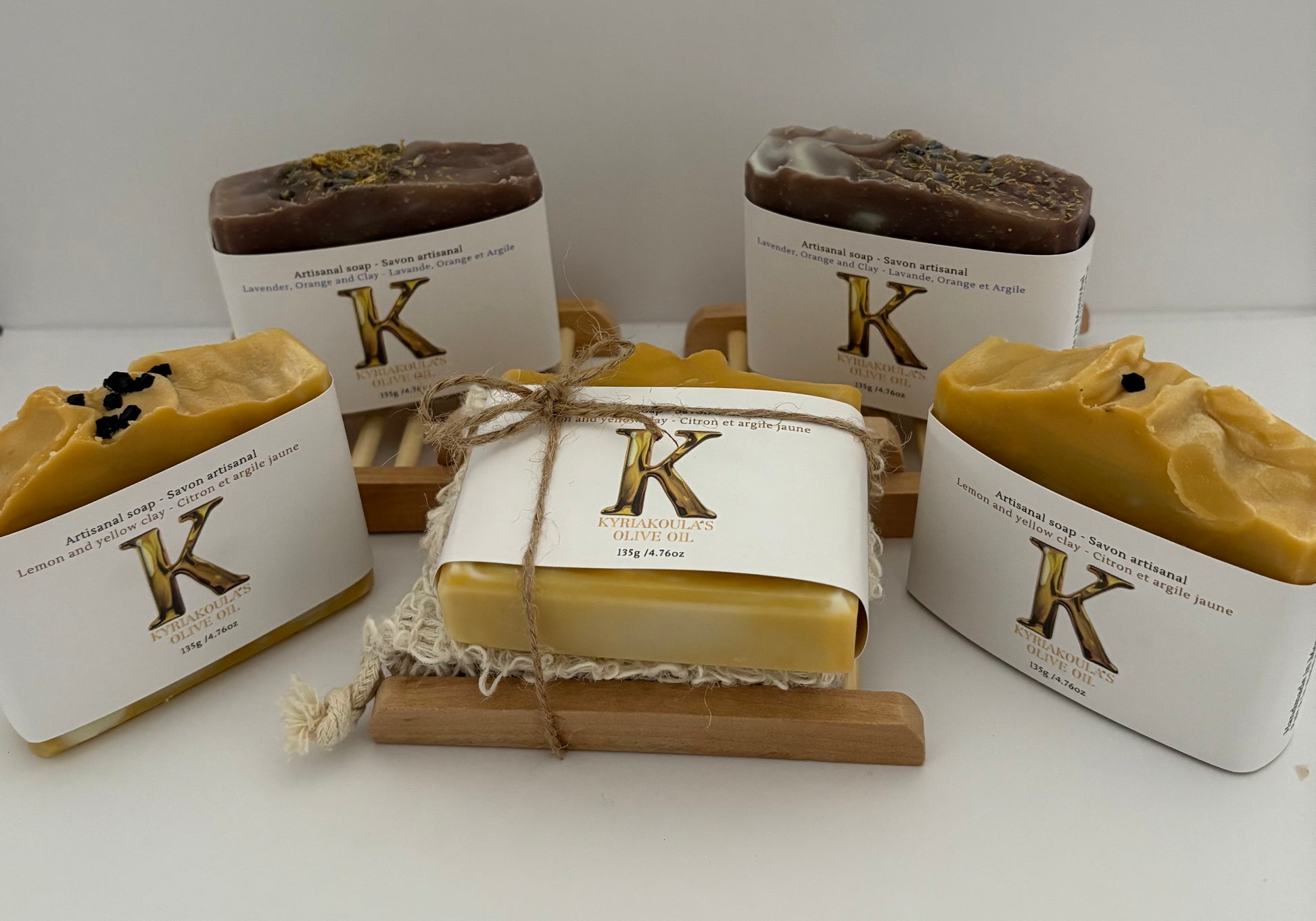 Handmade soap using are premium Evoo, comes with soap holder and sisal pouch.